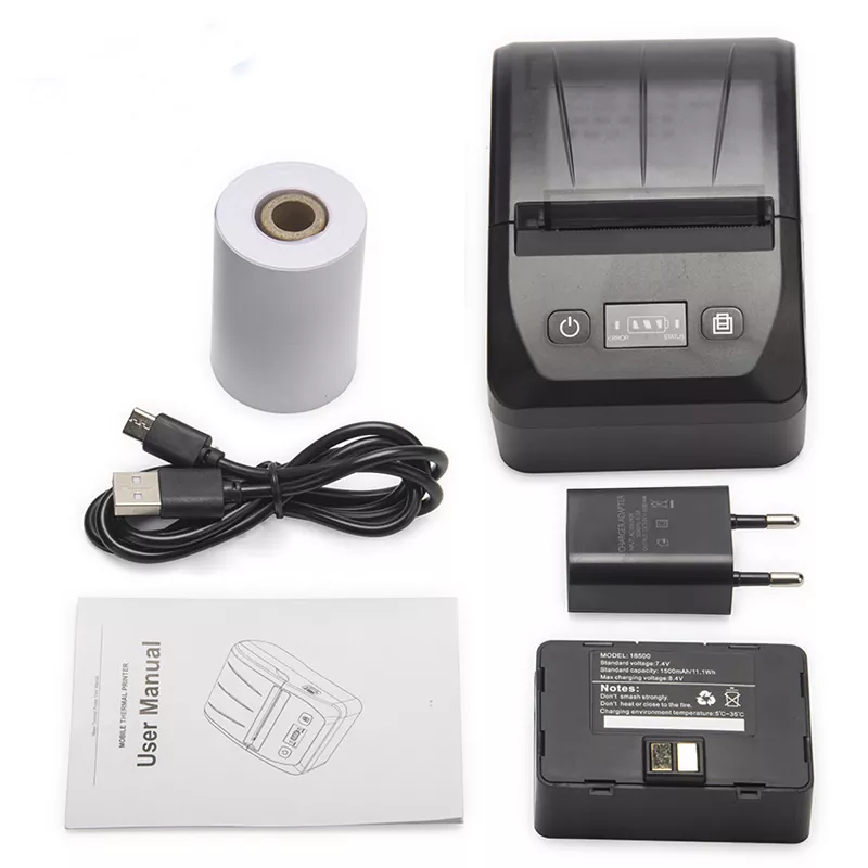 Het heeft een standaard dubbele Bluetooth + USB-interface, compatibel met Android-, iOS-, Windows- en ESC/POS-opdrachten. De complete accessoires omvatten: USB-oplaadkabel, voedingsadapter, papierrol en gebruikershandleiding.