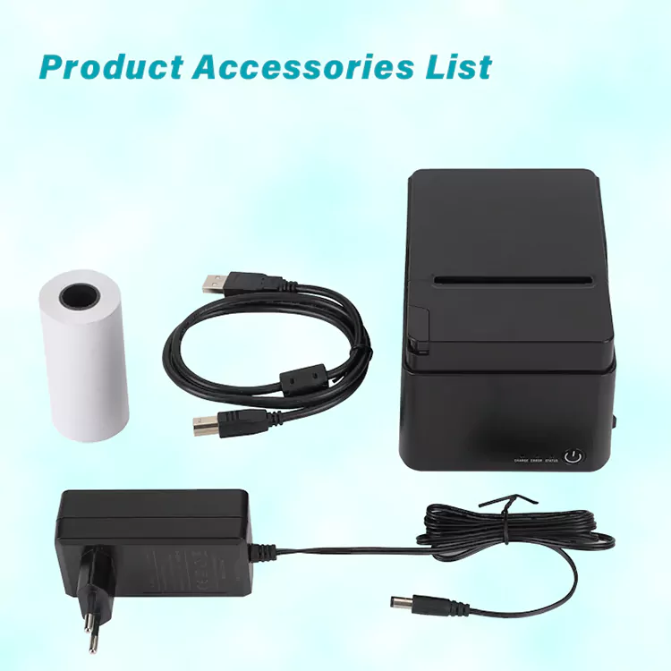 1. Pakket bevat: 80 mm bonprinter, papierrol, USB-kabel, handleidingen, adapter.