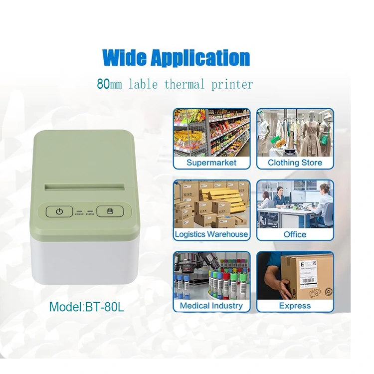 Het ontwerpconcept van onze thermische kleurenlabelprinter is om klanten in staat te stellen deze te gebruiken in fabrieksmagazijnsystemen en kleine winkels die kleine labels moeten printen, kleine labels, barcodes, verzendmarkeringen, stickers, enz. Het 80L-model kan afdrukken in breedtes van 20 tot 80 mm ondersteunen, waardoor het geschikt is voor verschillende klanten met verschillende behoeften. Het is ontworpen om compact van formaat te zijn, waardoor het gemakkelijk te dragen en te plaatsen is.